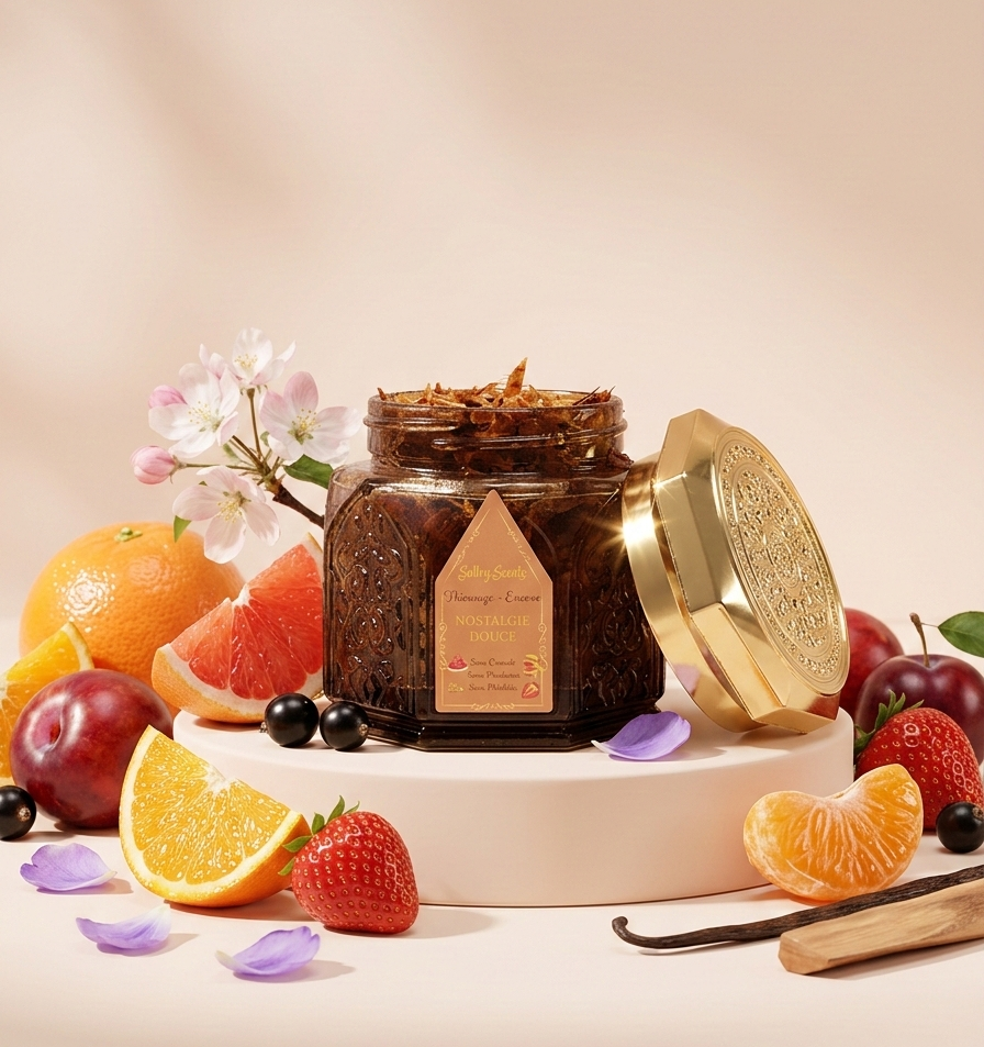Nostalgie Douce est un encens parfumé qui enveloppe votre intérieur d’un sillage fruité, doux et délicatement gourmand. Sa fragrance évoque la fraîcheur de fruits juteux cueillis en été, rehaussée par des notes florales élégantes et un fond chaud de vanille et de bois de santal.