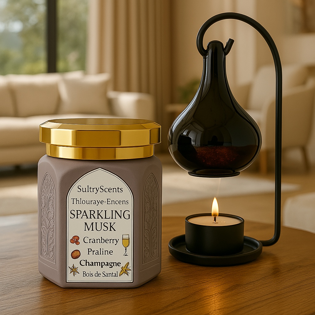 Ce mélange envoûtant associe la profondeur du musc et du bois de santal à la gourmandise du praliné, relevé par l’acidité de la canneberge et la fraîcheur du citron 🍋🍓. Le résultat : une atmosphère chaleureuse, élégante et apaisante.