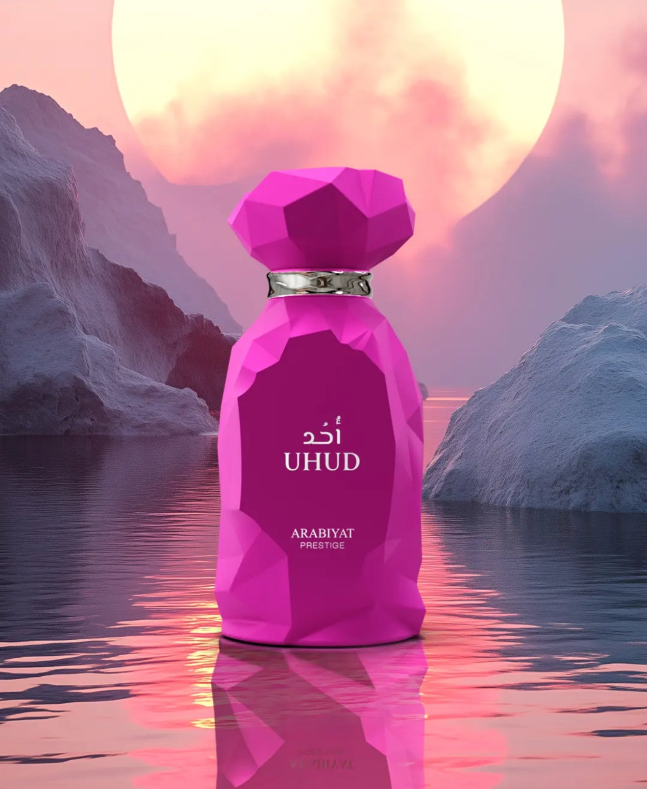 Uhud est un parfum gourmand et envoûtant où la framboise juteuse et les fruits rouges se mêlent à un cœur de rose veloutée, nappée de caramel et de miel doré. Le tout repose sur un sillage de vanille douce et crémeuse, chaud, sucré et terriblement addictif.