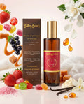 Son cœur gourmand et pétillant s’exprime à travers des notes fruitées de fraise, mandarine verte et agrumes juteux, adoucies par la rondeur de la vanille et le velouté du bois de santal. La touche de bonbon sucré et d’ambre amène un côté doux, réconfortant et sensuel.
